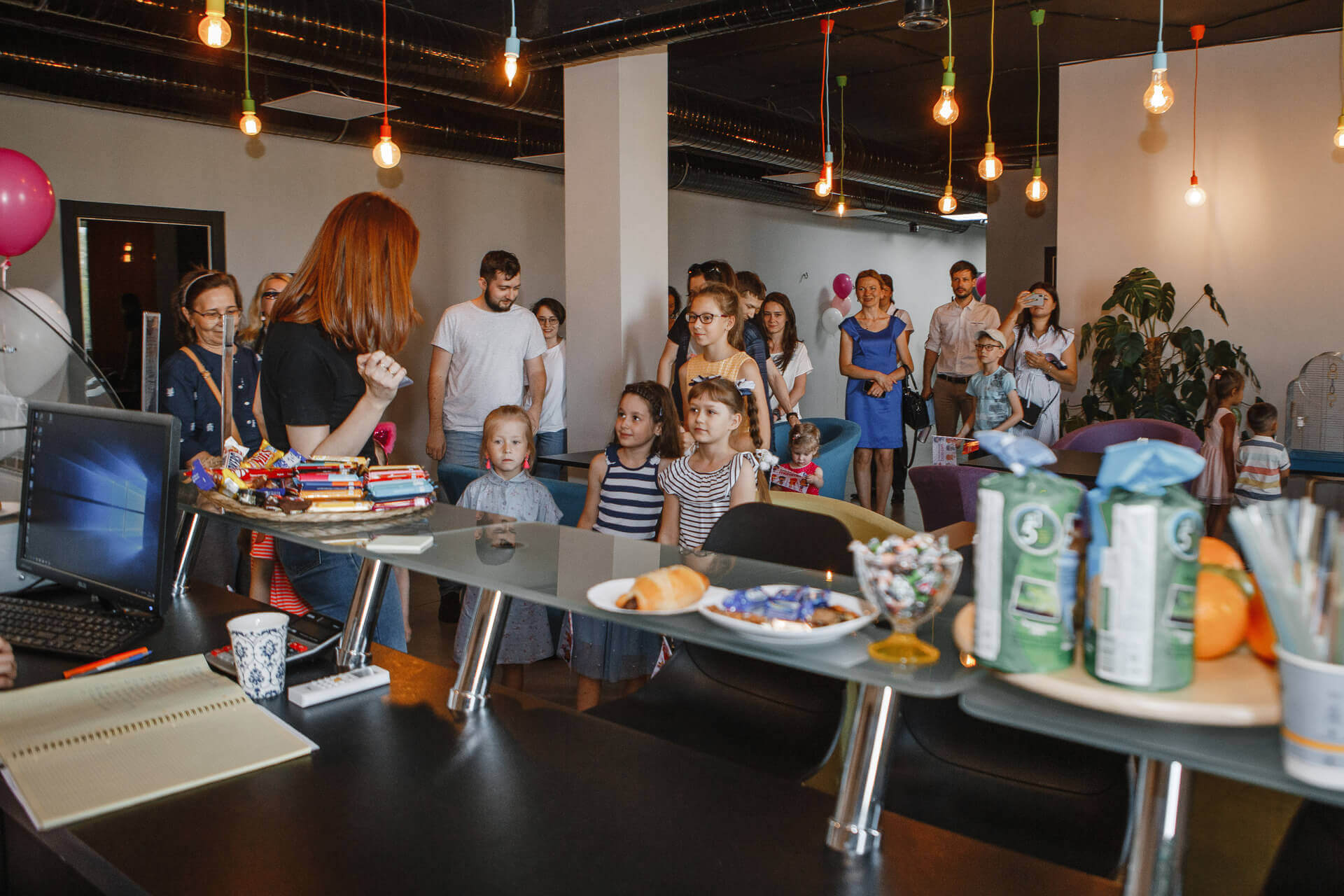 Для детишек сотрудников нашей компании прошла экскурсия по офису, где работают их родители, весёлая анимация развлекала маленьких гостей, на творческих мастер-классах каждый смог придумать свой собственный дизайн тарелок фрисби и футболок с корпоративным логою а ещё ребята сами слепили игрушку-лизун флаффи-слайм, с которым весело играть. Детский вариант игрушки антистресс)))
